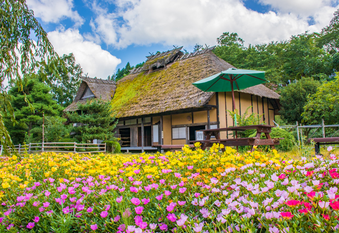 鬼婆伝説の地に建てられた、楽しみながら歴史を学べるテーマパーク。園内には、伝統的生活文化を再現した武家屋敷、農村生活館などがあります。